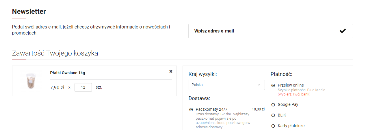 Po pomyślnym zalogowaniu należy przejść do koszyka, w którym posiadamy nasze produkty: