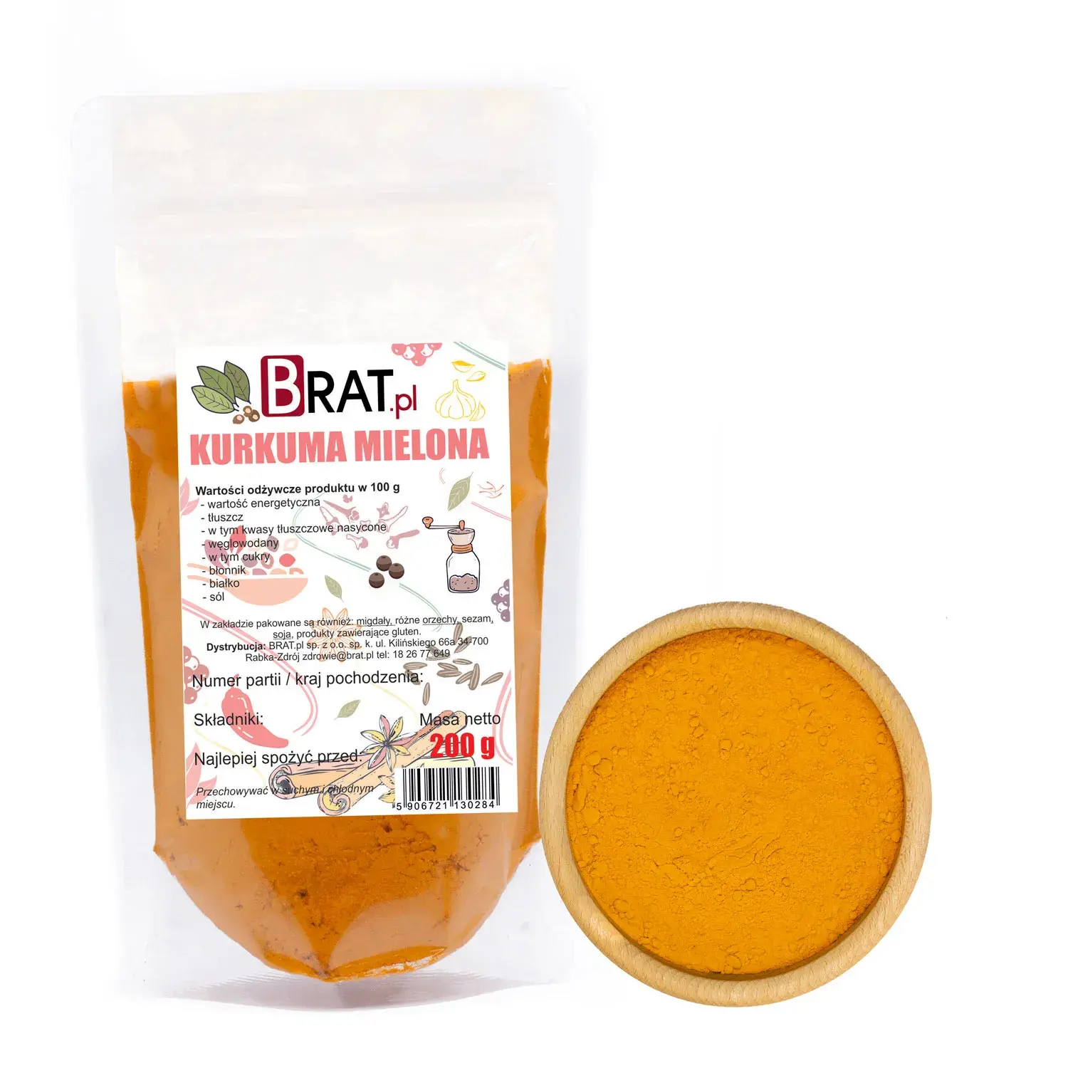 Opakowanie zawiera 200 g kurkumy mielonej.