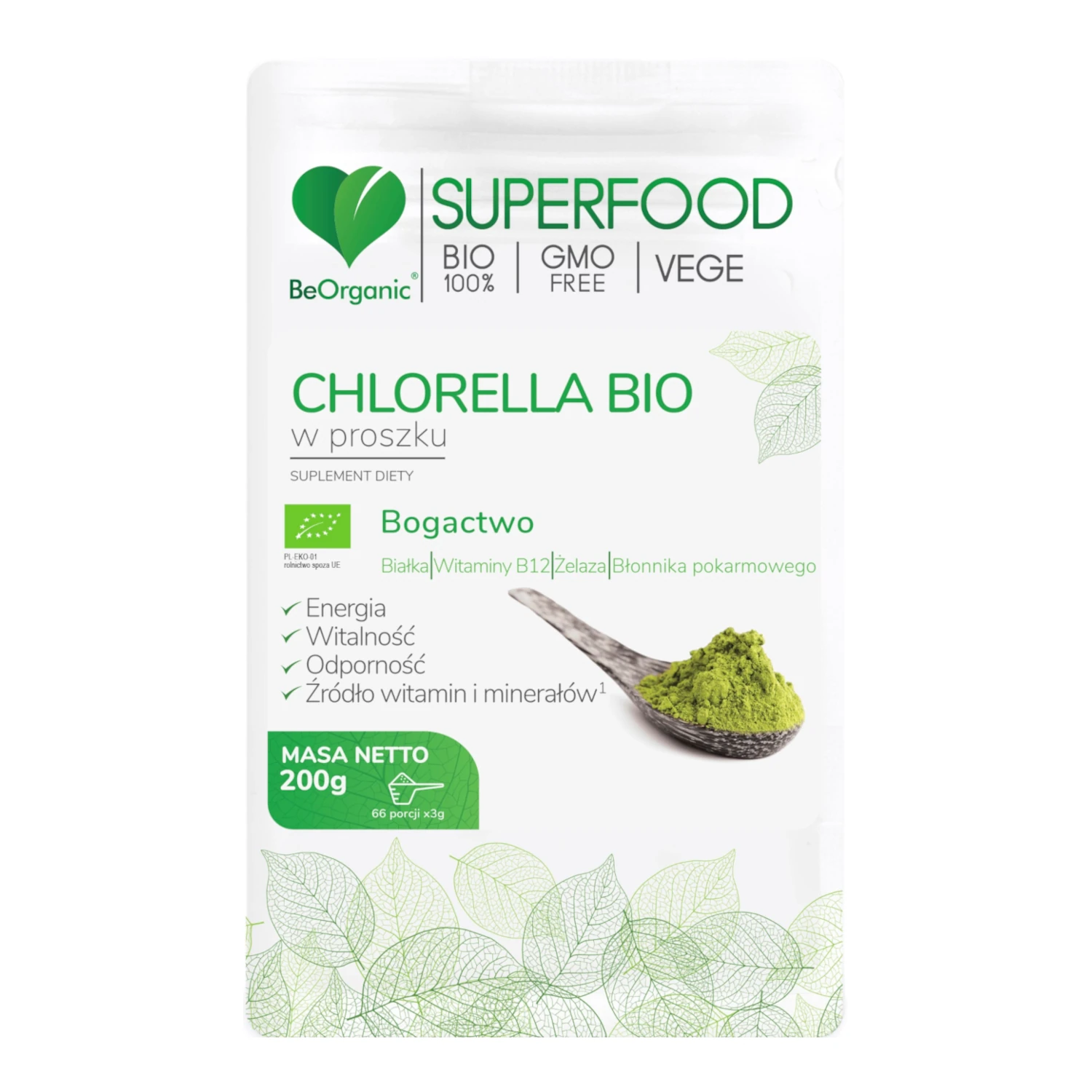 Opakowanie zawiera 200 g Chlorella BIO w proszku - 66 porcji.