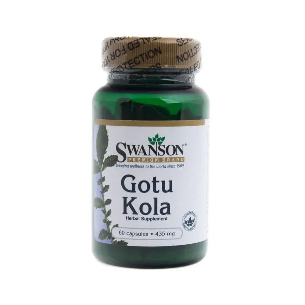 Gotu Kola marki Swanson to suplement diety zawierająca sproszkowaną łodygę i liście z Gotu Koli (wąkrotka azjatyckiego).