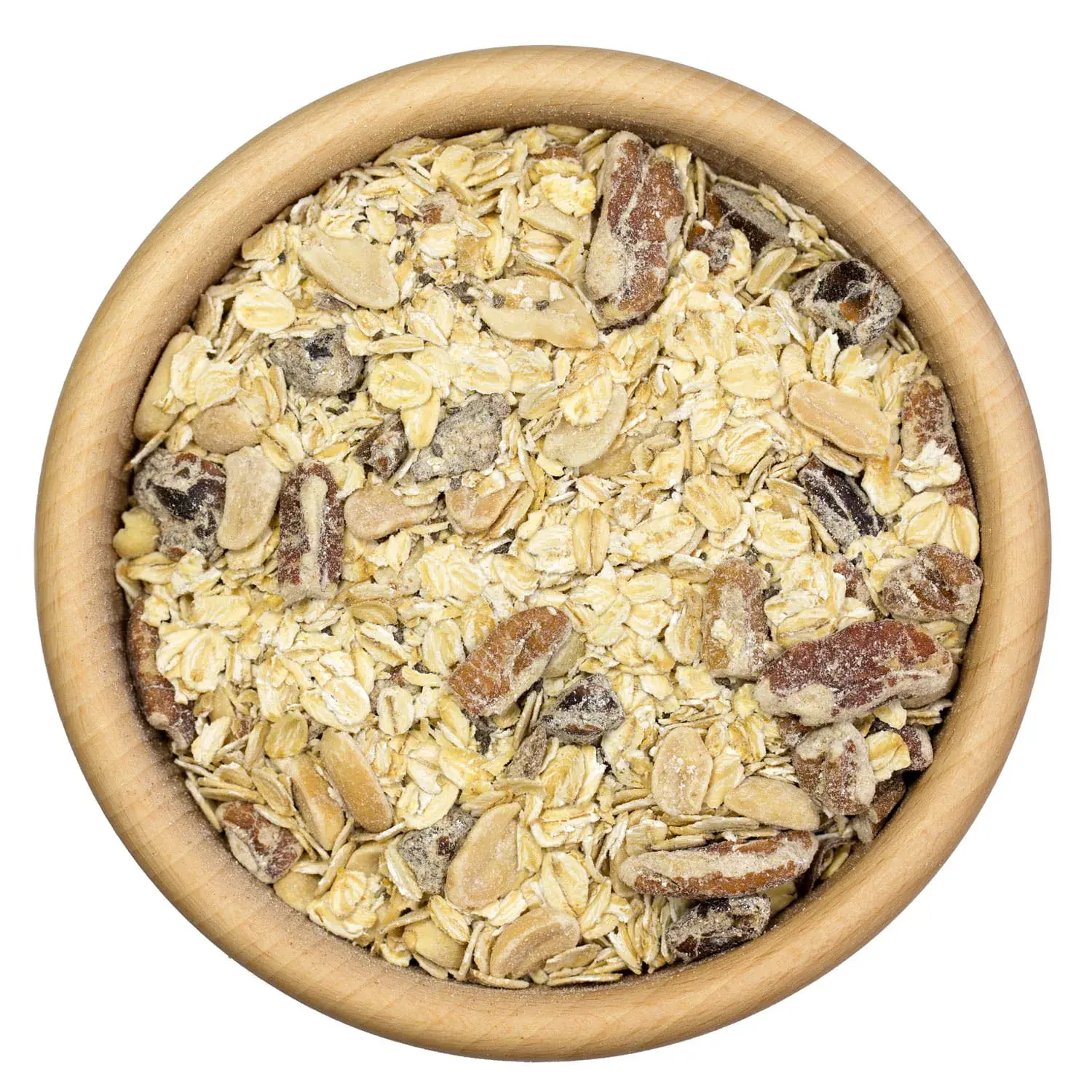 - płatki owsiane, orzech ziemny prażony, daktyl cięty, orzech pekan kawałki, nasiona chia.