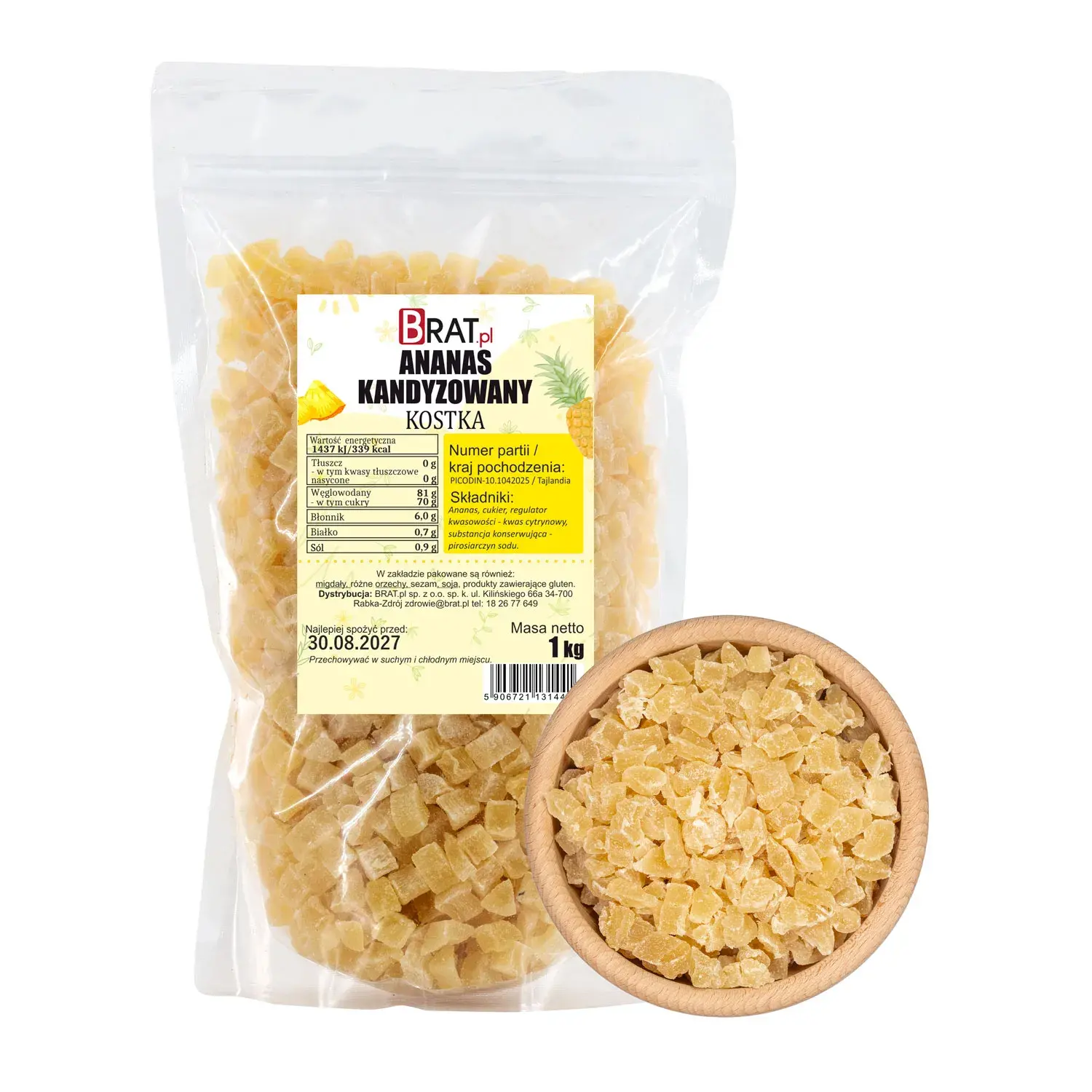 Opakowanie zawiera 1 kg kandyzowanego ananasa.