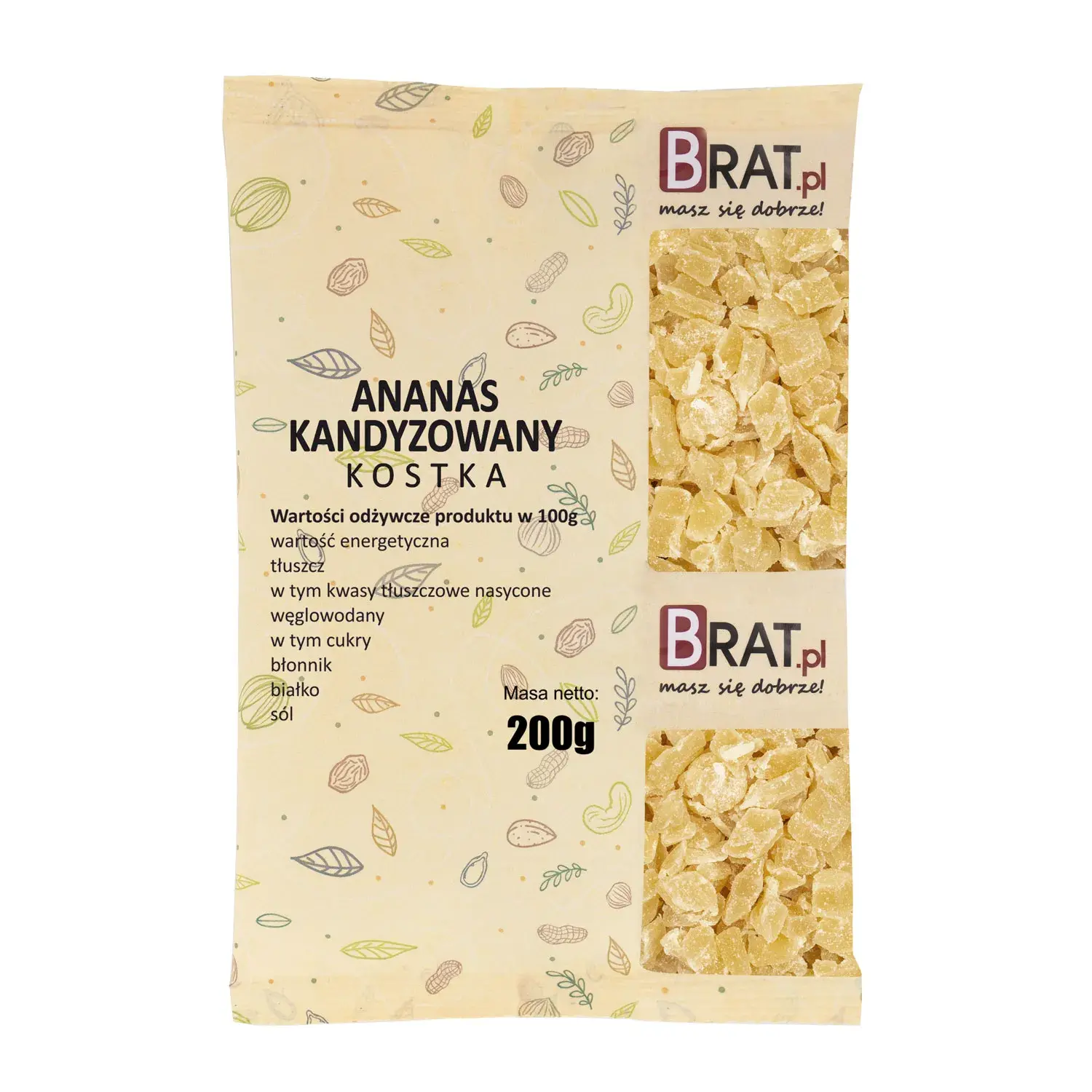 Opakowanie zawiera 200 g kandyzowanego ananasa.
